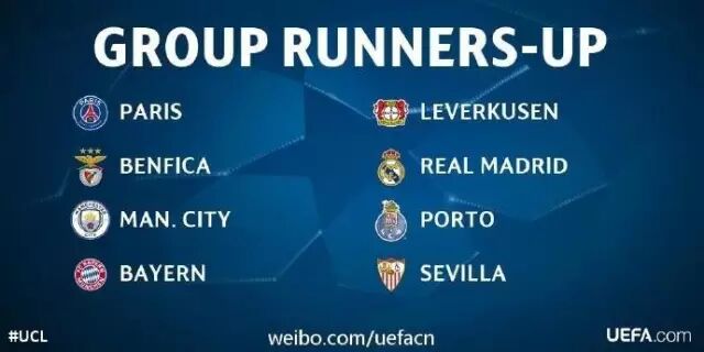 、多特蒙德、萊斯特城和尤文圖斯獲得各自小組頭名,巴黎聖日耳曼 、本菲卡 、曼城、拜仁慕尼黑、勒沃庫森、皇家馬德裏、波爾圖和塞維利亞取得小組第二