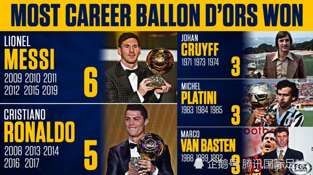 ,金球王梅西超越C羅梅西第6次贏下金球獎,超5次獲獎的C羅,再次獨享金球第一人榮耀,其捧杯次數也比並列第3的普拉蒂尼、克魯伊夫與範巴斯滕多一倍 。梅西終結皇馬球員對金球獎連續3年的壟斷,巴薩球員也以12次奪魁,超越皇馬人的11冠,躍居曆史第一金球大戶 。2017年C羅奪得個人第5座金球獎後,《馬卡報》曾盛讚其是足壇喬丹,飛人也曾5奪常規賽MVP,而如今梅西卻在得獎次數上超越C羅與喬丹 ,NBA曆史上也隻有天勾賈巴爾曾6奪MVP