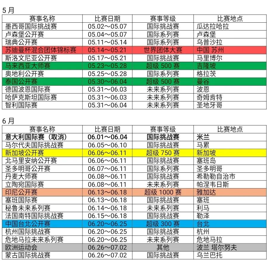 ,老葉為大家奉上更新後的2023年世界羽聯全年賽事總覽