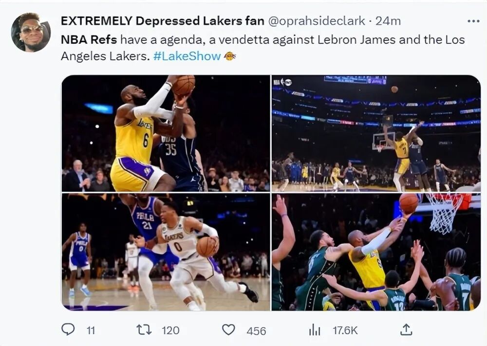 有球迷表示這已經不是裁判第一次黑湖人隊了,湖人對陣獨行俠 、費城 、國王 、綠凱的四場比賽湖人都被裁判給吹掉了,不然湖人要多四場勝利 。