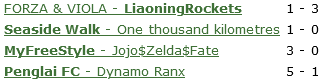 次級聯賽第1組裏 ,伊萬大佬麵對華龍大佬直接開場打出500+rt ,硬實力壓製取得五球大勝,華龍大佬在開局四連勝後之後三場一瀉千裏, 本場打出523防反戰術的他們開場評級僅361rt,防守不住陷入無法與伊萬大佬相抗衡 ,此役廖誌、屠永倫和盧納齊均上演了梅開二度 。